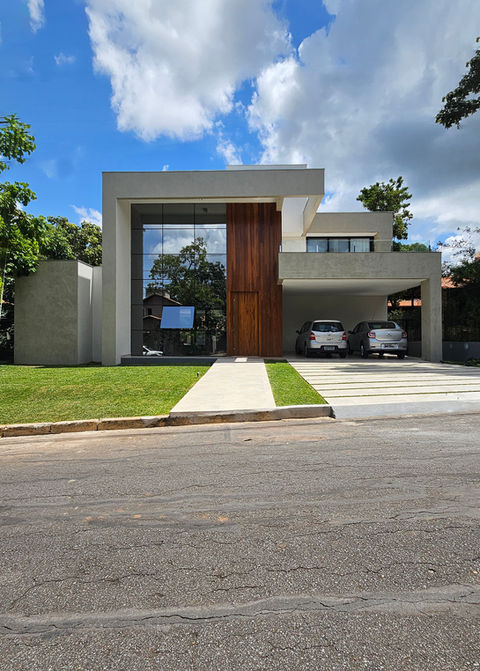 Nesta casa fomos responsáveis pela escolha de acabamentos e projeto do interior dos ambientes. Trabalhamos cores claras e variações de texturas que elevam a qualidade espacial dos ambientes.